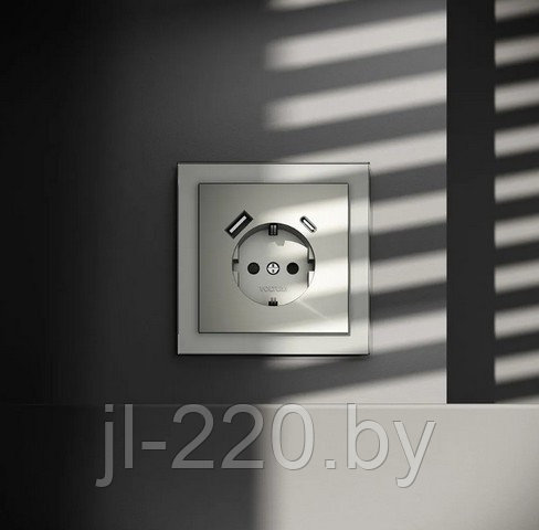 Розетка встраиваемая VOLTUM S70 с заземлением и защитными шторками, 16А, с USB, A+С - универсальное решение для всех гаджетов Современная розетка 3-в-1 с: